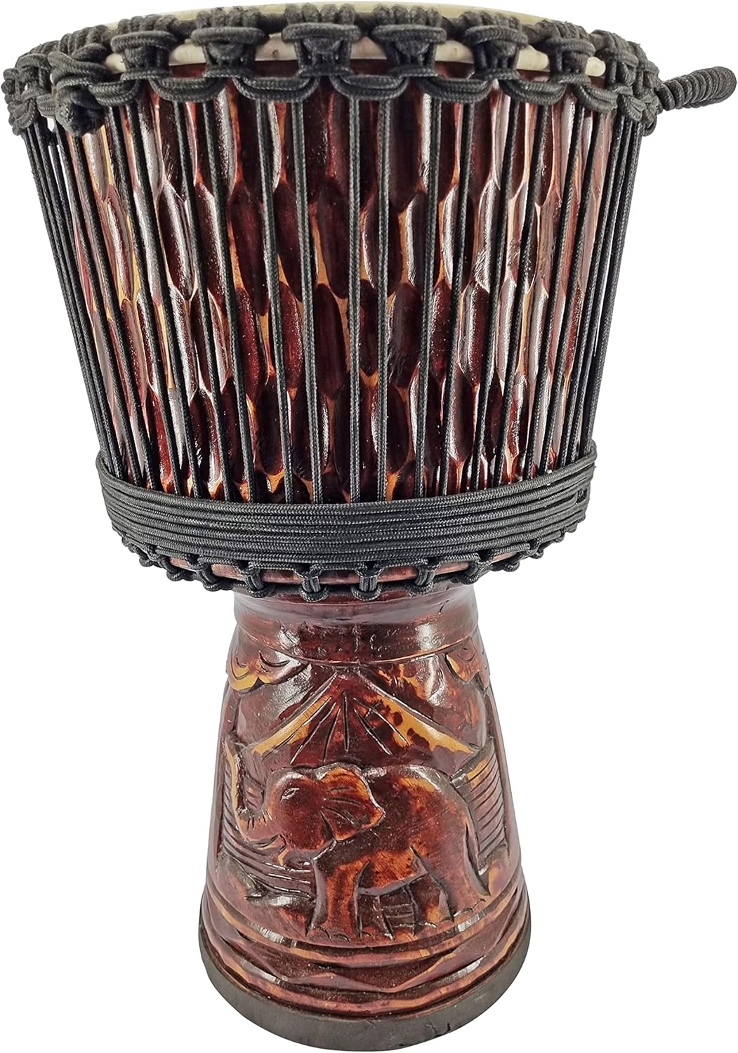Un Djembé con una bella estética a un precio razonable. Tiene un tamaño de 63 cm y un diámetro de 33 cm, lo cual es perfecto para poder tocar de forma muy cómoda.